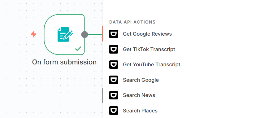 - In the node library, search for “Dumpling AI” and choose the “Search Google” node.