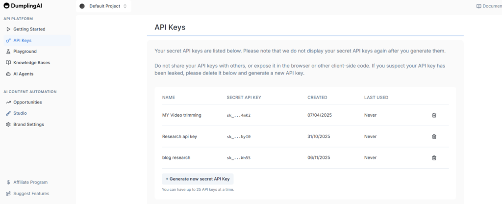 - Purpose: Allows n8n to communicate securely with Dumpling AI for research outputs.