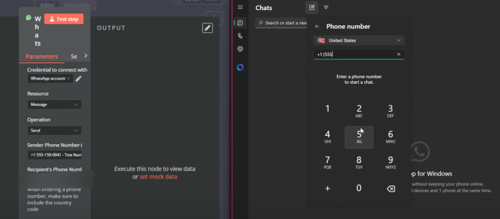 - Test the workflow with your WhatsApp number.