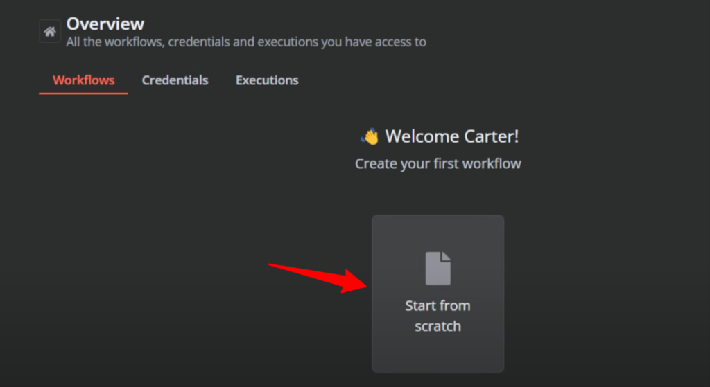 - Create a new workflow from scratch.