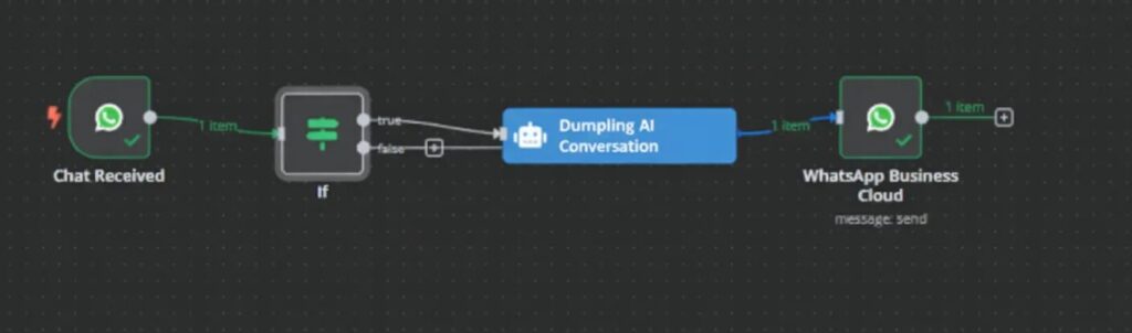 In short, n8n handles the heavy lifting of automation like the triggers, routing, and message delivery, while AI adds the brains. Tools like Dumpling AI elevate WhatsApp automation beyond rigid, template-based replies, turning it into a dynamic, two-way conversation that feels responsive and human.