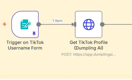 The HTTP Request Node connects to the Dumpling AI API to fetch the TikTok user’s full profile information. This includes: